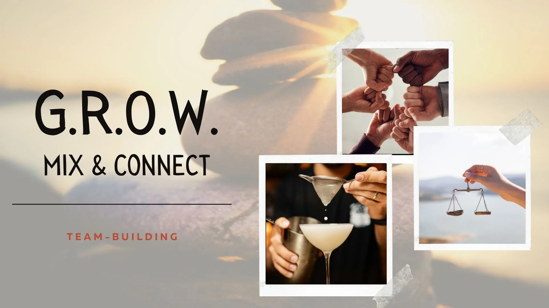 G.R.O.W. | Mix & Connect is a 30–60 minute team‑building session designed to reinforce the principles of GROW through a collaborative cocktail‑making experience.
